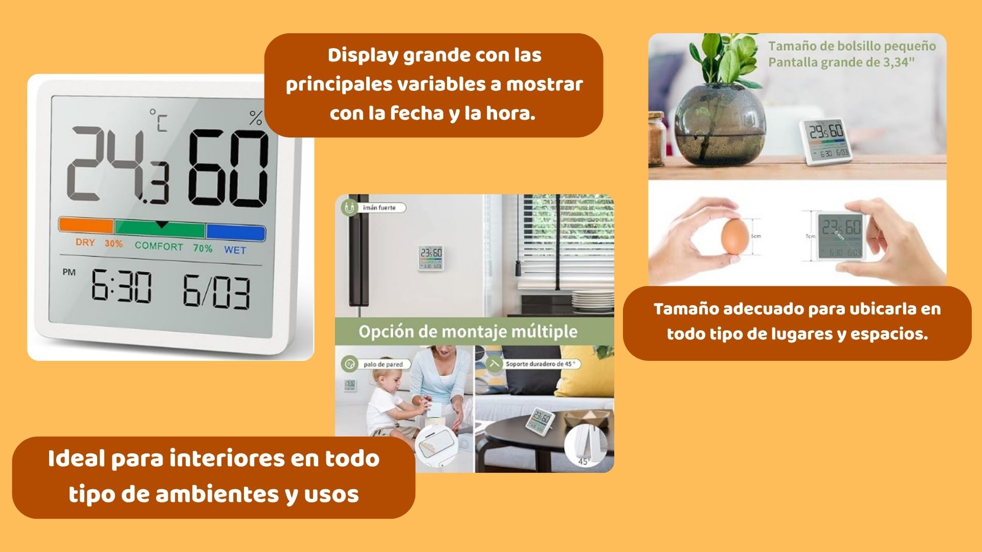 La visibilidad es, sin duda, su carta de presentación: los dígitos de temperatura dominan el espacio, seguidos de una lectura de humedad que no requiere entrecerrar los ojos desde el otro lado de la habitación.